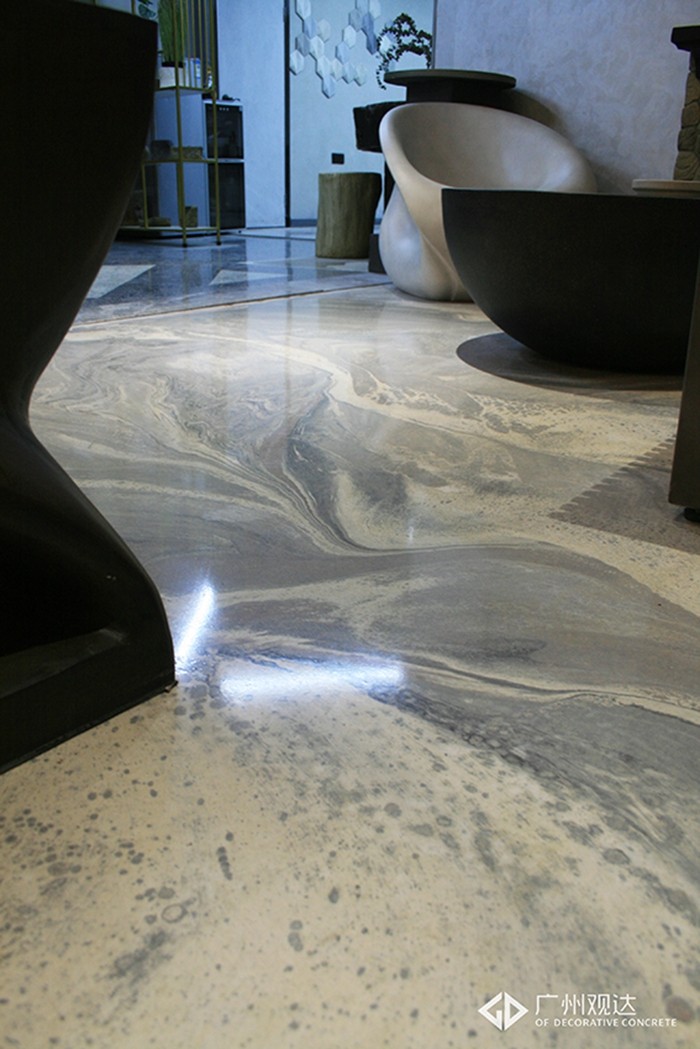 根據(jù)不同的空間要求,選擇合適的材料來(lái)實(shí)現(xiàn)藝術(shù)地面的施工方案,有特制混凝土、樹(shù)脂、混凝土酸著色、彩色混凝土等。